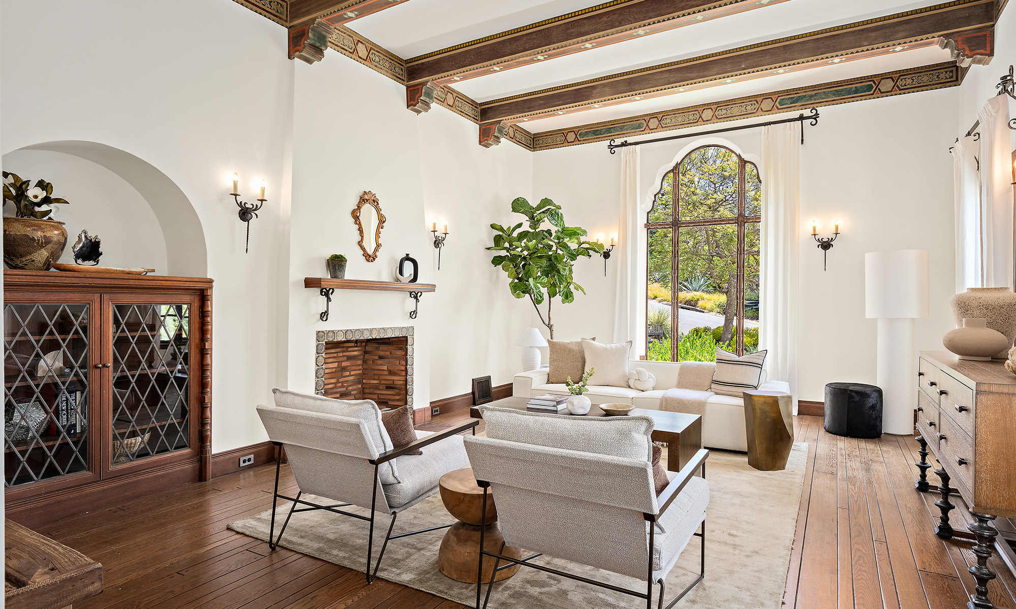 This 1920s Spanish Revival home has undergone a major renovation that updates the layout and adds modern features while preserving its original charm. The upper floor was reconfigured to create a gracious primary suite and two children’s bedrooms. The kitchen, dining, and living areas were opened up to create a more connected, spacious feel. The kitchen was fully renovated. The unfinished basement and garage were converted into a guest bedroom and rec-room with large sliding glass doors leading to a side patio. Site renovations included front and side patios, rear deck, hot tub, sauna, and terraced yard.