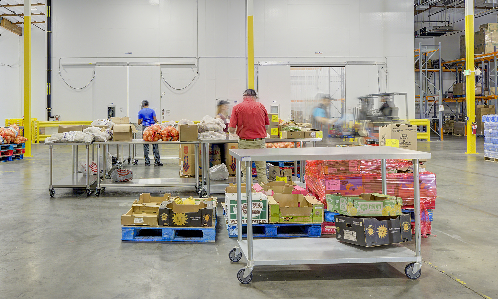 The food bank will include receiving and distribution areas, freezer and refrigeration storage, dry storage, pantry shopping areas, offices, and a volunteer area.